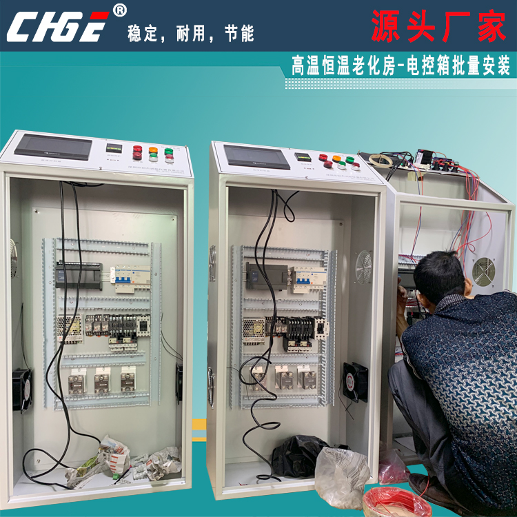 早期創杰在控制柜上使用數顯按鍵式的控制器比較多,后來由于技術的發展和成熟,觸摸屏即是趨勢也是升級版更加實用,觸摸 屏控制器它不光可以走定值,還可以走程序,在條件允許的范圍內還可以走溫度斜率,這是定點按鍵式控制器所不能實現的,因此后面創杰所做的老化房電控箱就基本上采用觸摸屏的控制模式了,如下圖所示就是創杰的標準電控箱,批量生產價格會更有優勢;除非客戶另行要求要使用按鍵式的控制器;電控柜里的各元件不能用得差,這是老化房控溫穩定的關鍵,一臺好的老化房一定要配一個強大的“大腦”那就是電控箱,所以控制部分也是創杰重點打造的一個環節。