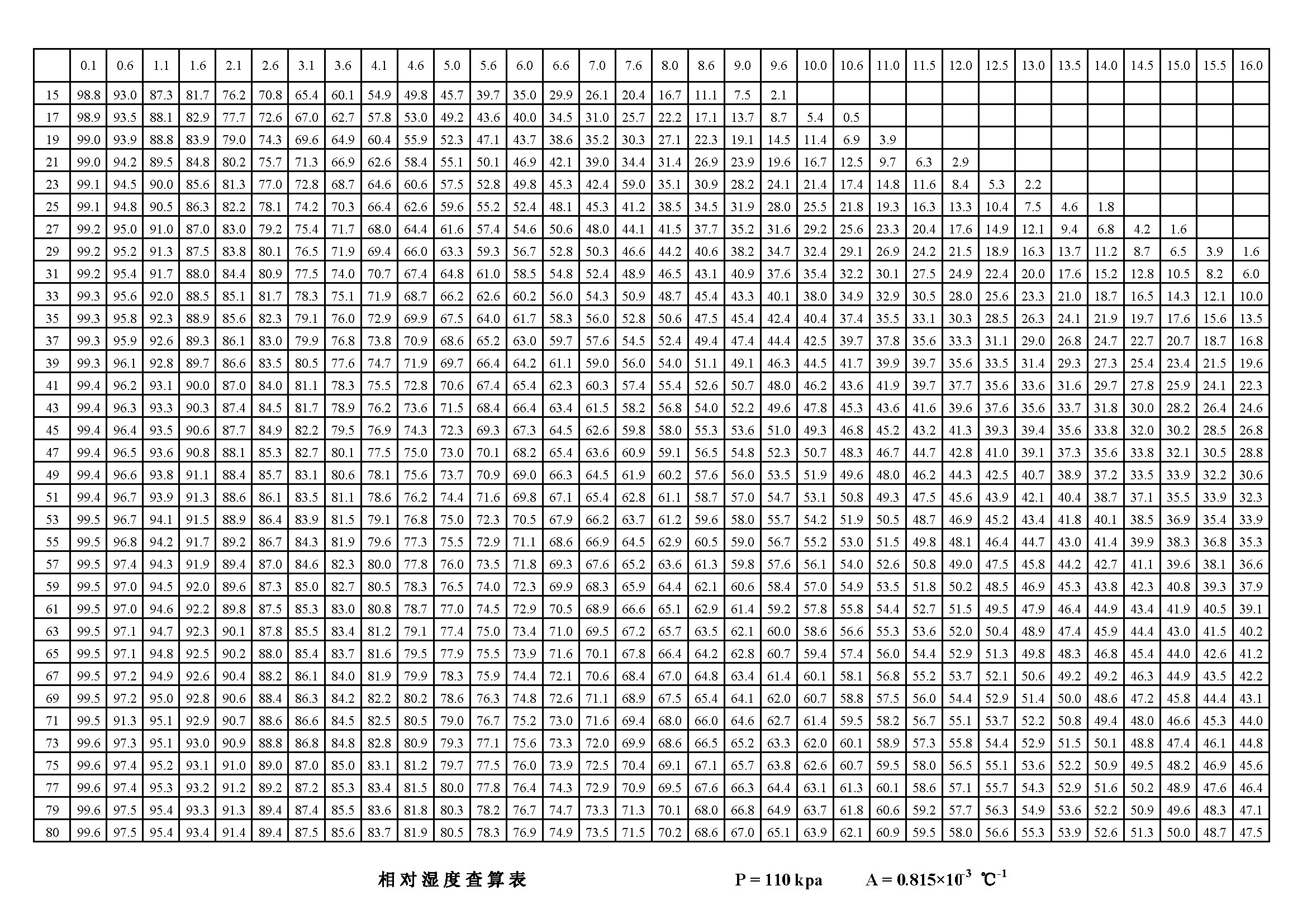 相對濕度對照參考表:看干球溫度和干濕球溫差就可以知道相對濕度